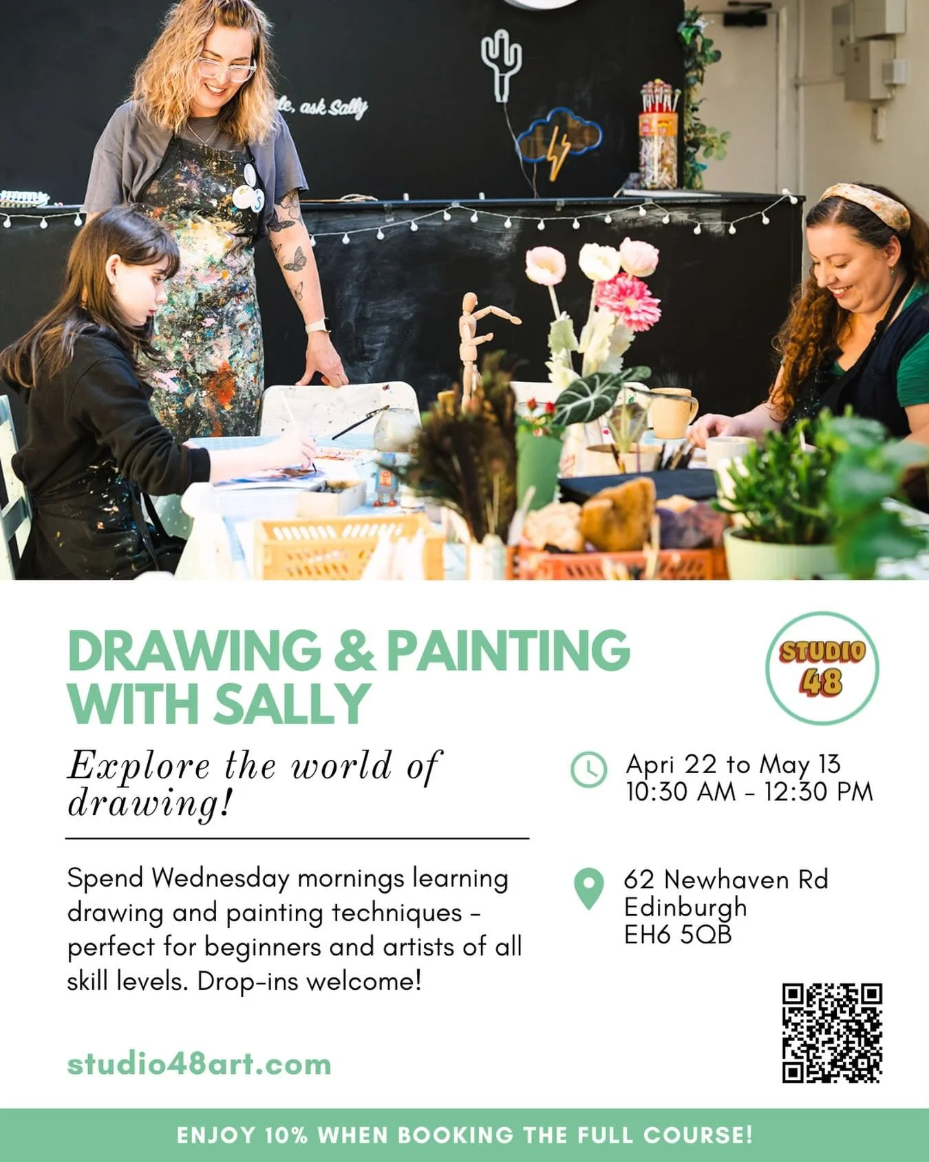 Our cosy Leith studio is the perfect creative space, but we can also bring the art to you. We host Arty Parties at Studio 48 and beyond to celebrate your special occasions - perfect for birthdays, corporate events, hen dos or just a fun day out. Get in touch at hello@studio48art.com to learn more about our Arty Parties!